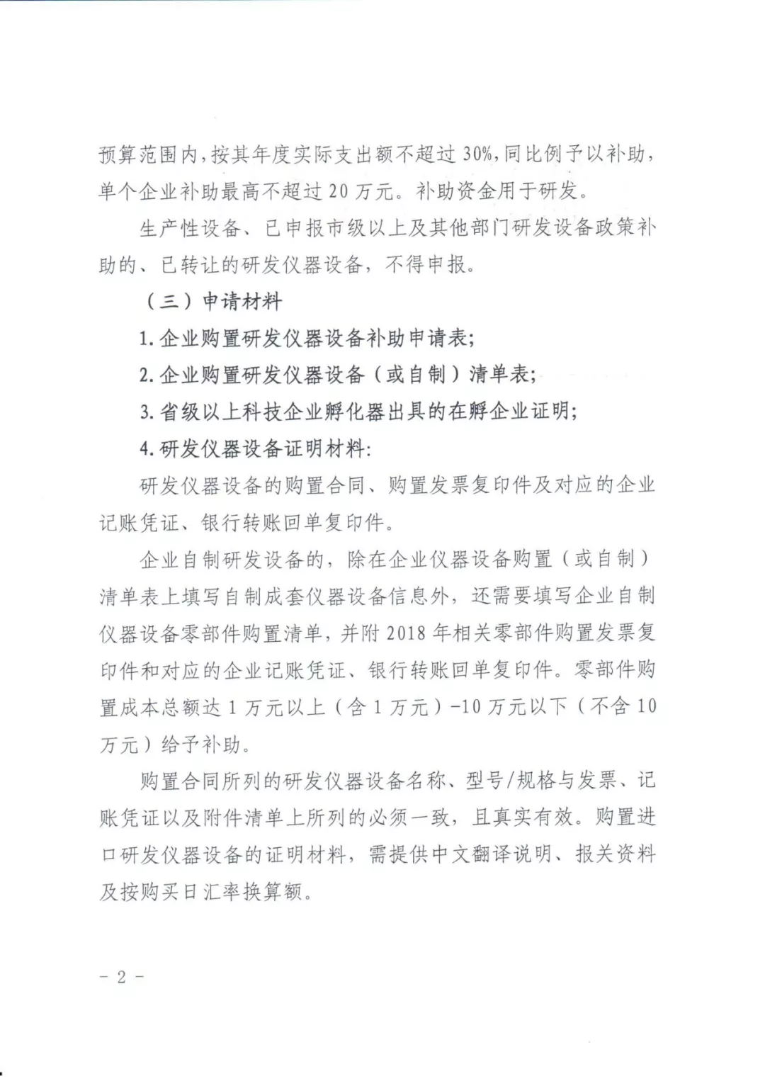 對2018年購置或自制用于研發(fā)的關(guān)鍵儀器設(shè)備原值:1萬元以上(含1萬元)-10萬元以下(不含10萬元),按其年度實際支出額不超過30%予以補(bǔ)助,單個企業(yè)補(bǔ)助最高不超過20萬元。補(bǔ)助資金用于研發(fā)。