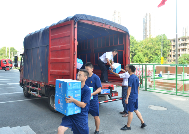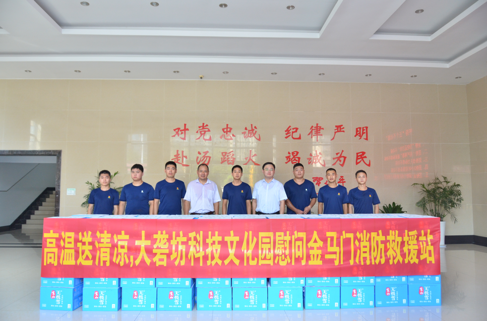 ? 近日,連續(xù)高溫,蕪湖市氣象臺發(fā)布黃色高溫預(yù)警信號。8月4日,園區(qū)負責人卞國琛、物業(yè)后勤部長俞安平一行前往金馬門消防救援站慰問消防官兵,并捐贈150箱解暑物資,對高溫期間依舊堅守在崗位的消防官兵表示由衷的敬意和真誠的感謝。