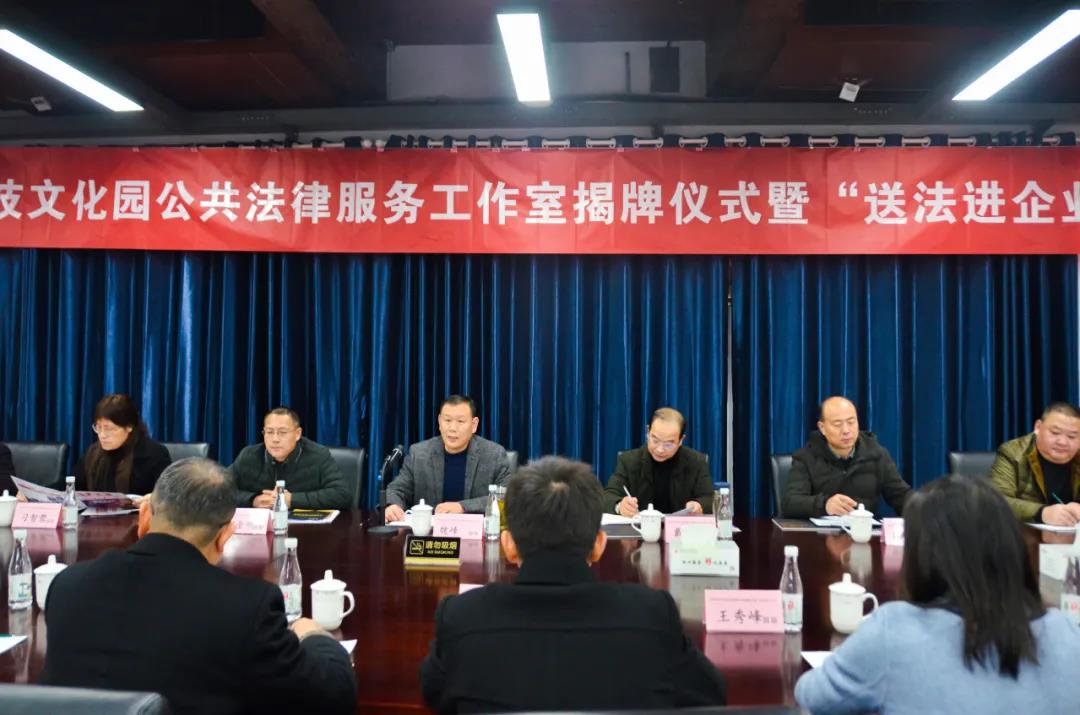 12月11日,大礱坊科技文化園公共法律服務(wù)工作室揭牌儀式暨“送法進(jìn)企業(yè)”活動(dòng)在園開(kāi)展,區(qū)司法局、區(qū)委政法委、區(qū)法院、區(qū)檢察院、區(qū)工商聯(lián)、區(qū)經(jīng)信局、區(qū)委常委、政法委書(shū)記魏峰及各成員單位、園區(qū)負(fù)責(zé)人、企業(yè)代表等50余人出席活動(dòng)。